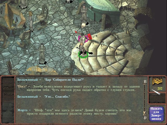 11) Пыльные рядом с Монументом: "Пыльный не обращает на тебя внимания, вместо того чтобы повернуться и прекратить свои завывания." корявое предложение.
