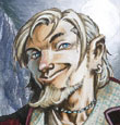 Гном. Просто гном. Непримечательный. Разве что мрачноватый какой-то. Обычно гном - душа компании, трепло, каких мало - а этот молчалив и замкнут, да и юмор - куда ж без чувства юмора, оно есть у всякого уважающего себя гнома - у него какой-то странный, темный. Опять-таки внешний вид... Шем (так зовут нашего героя), в отличие от своих соплеменников, не питает теплых чувств к ярким цветам, предпочитая не бросающиеся в глаза темные оттенки, да и вообще не любитель он попадаться на глаза. Костюм его служит ему в этом подспорьем: темный плащ с капюшоном, темная же одежда, мягкие кожаные сапоги... подозрительный тип, в общем (особенно ухмылочка) - лучше обойти, чем связываться. А коли понаблюдать за ним подольше, так и вообще заметишь странные вещи: время от времени у Шема из-за пазухи вылезает какой-то странный зверь, и усаживается ему на плечо - и издали кажется, что Шем и зверь между собой общаются. Если же зверь вдруг вздумает взлететь, то (тем, кто хорошо видит в темноте) можно разглядеть, что это здоровенный летучий мыш. В общем, неудивительно, что Шема таки обходят стороной - кстати, он от этого особо не страдает, скорее наоборот...