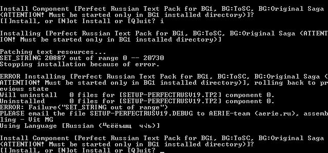 В следующей версии постараюсь это исправить, а пока предлагаю заменить Setup-PerfectRUSv19.tp2 файлом из прилагаемого архива: в нем замена только строк из оригинального BG1.